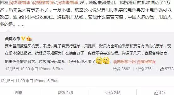 看来是气的不轻,不过也正常,订一张机票而已,竟然出来了这么多幺蛾子,要是我我也懵了啊... 通过这一个事情,评论下面引出来 N 个网友对自己曾经遭遇的吐槽,蒋方舟自己也转出了一些评论,都是网友们真实经历过的。