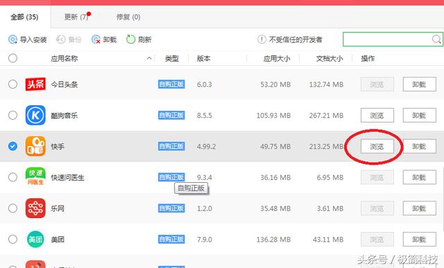 说到这里大家肯定想知道,快手里的视频时间很短,有的视频却很长,甚至是好几十分钟,苹果版的里面有个小窍门,按一下拍摄按钮是17秒,按三下是57秒,即使是57秒也不能展示什么精彩的片段,所以你们看到那些励志、正能量的短片都不是这么拍出来的,都是用了特殊方法弄出来了,今天教大家如何发长视频。 第一步:打开爱思助手,连接手机。 第二步: 点击 “应用游戏” ,找到快手 ,点击浏览,打开gifs文件夹。