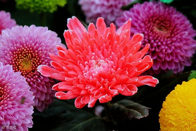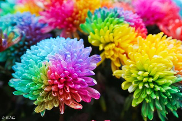 七彩菊花 水量控制可按季节区别对待,春季菊苗幼小不宜多浇水;夏季天气炎热,蒸发量大,浇水要勤快充足,可在清晨浇一次,傍晚再补浇一次,并要用喷壶向菊花枝叶及周围地面喷水,以增加环境湿度;秋季前要控水、控肥,避免植株窜高疯长。开花前,要加大浇水量并开始施肥;冬季须严格控制浇水。最好用喷水壶缓缓喷洒花叶,不可猛水浇灌根系。除按季节区分外,也要根据气候来养护,阴雨天少浇水,酷暑天多用喷壶湿润叶片。 菊花的繁殖可以选择种子种植,扦插,嫁接的方式培育。修剪上当菊花长至10cm以上时,开始摘心,只留植株底部4-5片叶,上部叶片全部摘除。待长出5—6片新叶时,再将心摘去,使植株保留4-7个主枝,以后长出的枝、芽要及时摘除。摘心能使植株发生分枝,有效控制植株高度和株型。最后一次摘心时要剪去多余枝,留下3-5枝即可,开花时每支仅留一朵花苞。