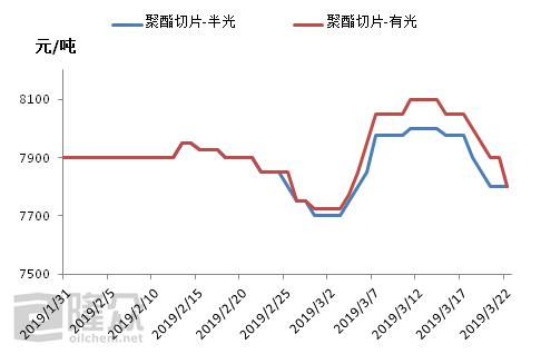 三月已进入尾声,聚酯产销不温不火,时高时低的状况是这几周来的常态。原料端的震荡走势时刻牵动着聚酯市场的一次次波澜,距离月底还有一周的时间,聚酯切片在本月定位也大致已定,对于春暖花开的四月,聚酯切片尽显偏暖预期。 图1 华东地区半光聚酯切片价格走势