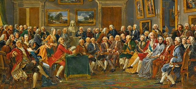 十七世纪的沙龙 现代沙龙延伸到会议方面,主要是规模较小、议题简要、非正式的,由行业内的企业聚集在一起进行讨论的会议,一般备有酒水糖茶或有歌舞表演的活动。