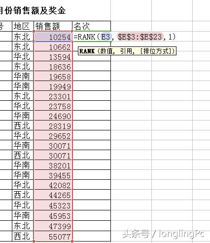 从最终结果我们可以看出,销售数据有两个相同的数值,这个公式会自动判断为相同的排名,而一般的排序是无法做到这点的。
