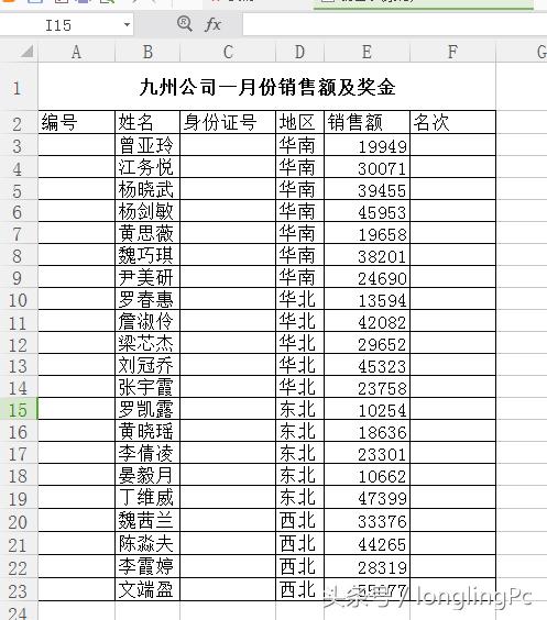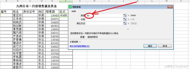 在表格操作应用过程中,我们会遇到把大量数据进行排序,如考核成绩名次,销售排名等操作 除了常规的升序降序排列方法外,还可以用rank公式来完成,此公式相对排序来说更加智能化,下面我们来看看如何操作! 我们以九州公司销售人员的销售情况为例进行操作说明,首先打开销售数据表,对销售额进行名次大小的排列,表的结构及数据如下图: