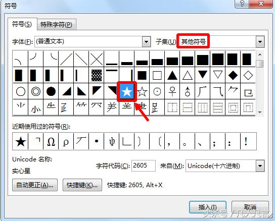 注:第二次使用就很方便,在最近使用的符号中可以快速找到