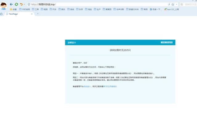小编我是网站小白,大大们可以略过,大家看看就好不用认真,这个只是为了好玩,里面的内容一定有好多没说到的,也可能有错的,如果大家要搞网站的话,可以找点专业建站的文章,视频小编只是瞎搞。如果大家喜欢,请关注我哦,麻烦大家点个赞,转发一下。我爱你们哦。 上一编文章我们说了怎么用10块购买域名和云虚拟主机,(没看过的朋友可以看看我上一编文章)购买这些后我们的域名必须备案才能使用的,不然你的网站打开来这是这样的。