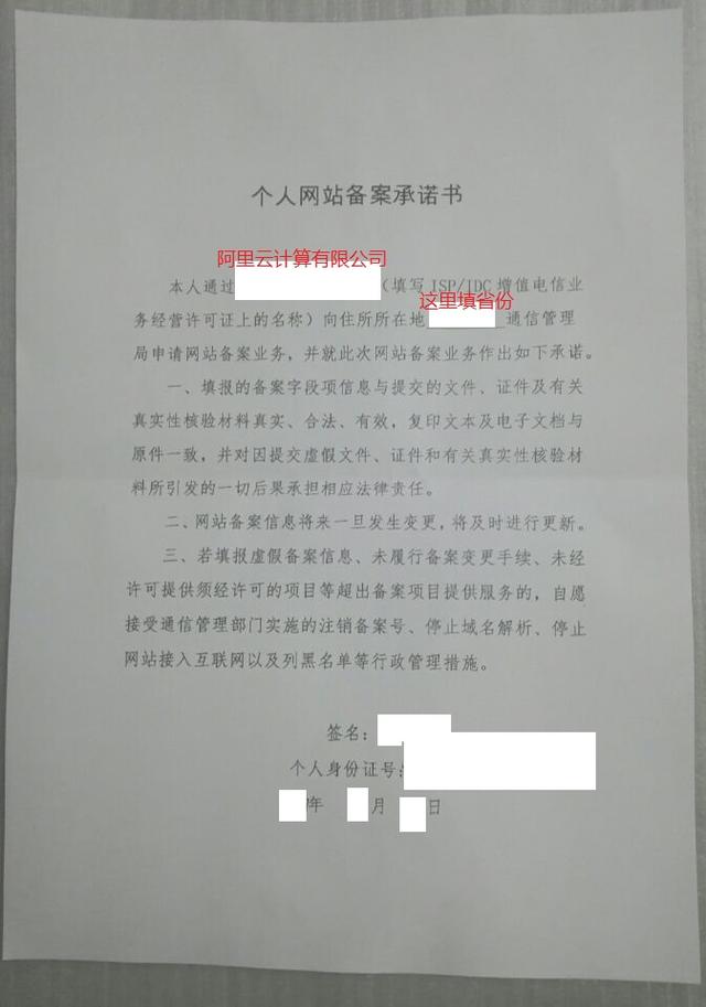 前面我们说了10块钱搞个网站的吗,我们域名花了3元,主机花了6元,还有1块钱干嘛用呢,这里还要打印一份"个人网站备案承诺书"。