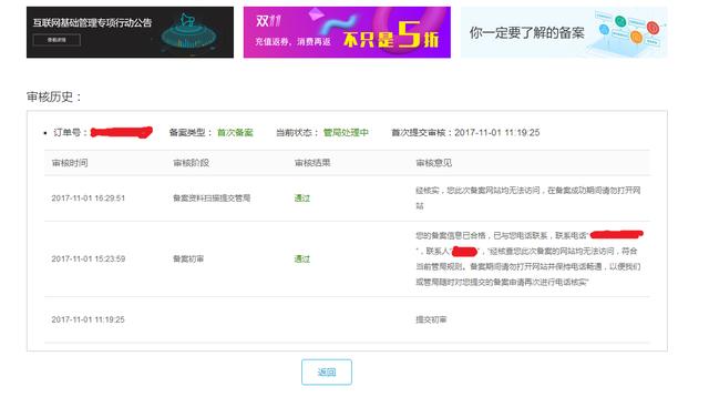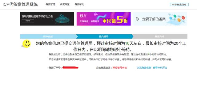 然后就是漫长的等待了,小编的网站也刚过初审,这个其间阿里云有打电话过来问你一些基本信息,问你的网站以后是用来干嘛的,这里我们就说是要做一个,个人的博客网站就可以了。