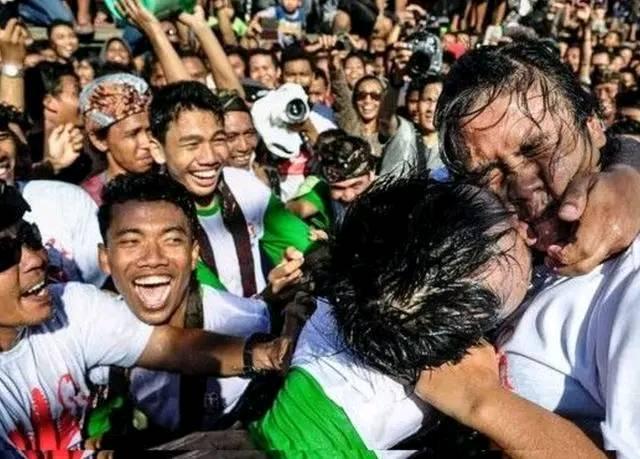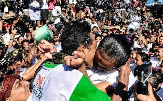 成千上万的人聚集在巴厘岛上,共同庆祝亲吻节,当地的人相信这个节日能够给村子带来幸运和繁荣,同时会让村子有新的发展与收获。