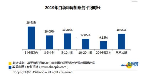 多数国产浏览器已屏蔽了“996.ICU”项目的GitHub地址。 图片来自微博用户@AweiLoveAndroid 实际上,程序员们与“996”的对抗已经有一段漫长的历史,科技、互联网企业的员工因连续几十个小时加班而猝死的事件并不鲜见。 在过去的几年中,几乎每隔几个月就会涌现出一批痛斥“996”工作制的新闻报道。智联招聘发布的《2019年白领生活状况调研报告》显示,仅有18.05%的白领不需要加班(在智联招聘2015年的统计中,这一数字为28.6%),26.43%的白领平均每周加班时间在3小时以内,16.09%的白领平均每周加班时间在3-5小时,18.2%的白领平均每周加班时间为5-10小时,12.05%的白领平均每周加班时间为10-20小时。有9.18%的白领平均每周加班时间在20小时以上,而这一部分白领的工作时间实际上已经接近“996”的模式(朝9晚9,6天/周)。“Shachiku东亚保健所”也给出了一份基于2017年调查的统计:“2017年大陆城镇劳动者周平均工作时间为46.2小时,2017年大陆劳动者超时工作(每日净工作时间大于8小时)率高达42.2%。” 而不同行业白领的平均加班时间差异则较大,IT/通信/电子/互联网行业的白领平均每周加班时间为9.3小时,其次为房地产/建筑业,平均加班时间为7.1小时/周,再次为交通/运输/物流/仓储,平均为6.8小时/周。贸易/批发/零售行业的加班时间相对较少,平均为3小时/周。