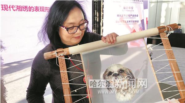 本届东北亚文博会搭建了一个平台,让冰城市民与中国四大名绣之一的湘绣近距离接触。 一只以假乱真的西施犬出现在绣布上,这是湘绣大师毛慧在东北亚文博会技艺展示现场带来的作品。据介绍,这幅西施犬是一名客人定制的,毛慧根据照片构图创作。 此次技艺展示现场,毛慧主要展示了湖南湘绣的一种特别针法——鬅毛针,这种针法是专门用于绣狮子和老虎题材的。“湘绣的图案借鉴了中国画的长处,所绣内容多为山水、人物、走兽等。上世纪六七十年代,老一辈人从其他的技法中衍生出鬅毛针法,而我是第三代鬅毛针传人。” 据毛慧介绍,鬅毛针法初学者要通过3至5年来掌握,仅能绣一般的花鸟图案,如果要绣动物则需要更长的学习时间,毛慧已经绣了32年。毛慧透露,她创作的湘绣作品价格从几万到几十万不等,前几年,琼瑶曾用80万元收藏了一幅毛慧创作的仕女图。 |