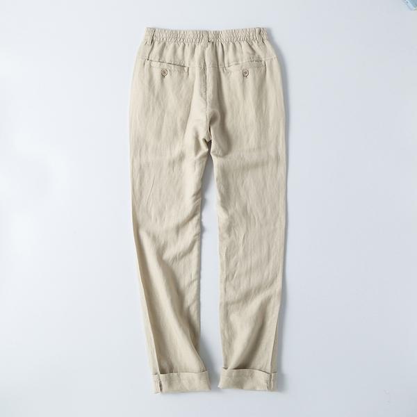 宽松亚麻休闲裤 亚麻裤可以归类到上面的直筒休闲裤类别,但为了提供一些具体的选择性,单独列出来。这类裤子比较宽松,也可以达到修饰腿型的作用。同时因为是亚麻的材料,非常透气。