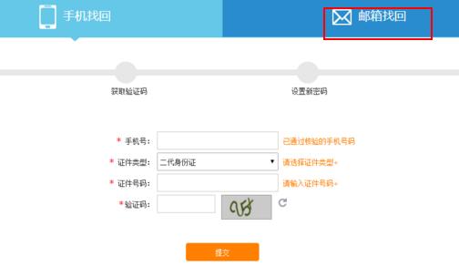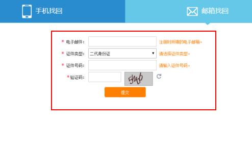 03选择邮箱找回,输入邮箱、身份证号码、验证码后,点击提交。
