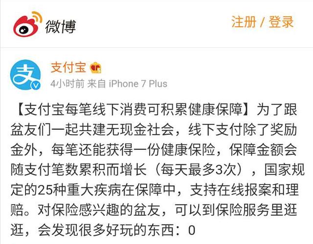 今天,就在4个小时前,支付宝官方通过微博,低调地发布了一则消息:用支付宝线下支付,送健康保险。