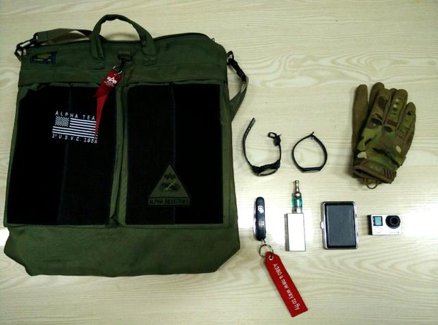 Alpha阿尔法Brewer头盔包;Mechanix超级技师迷彩基本手套;Casio卡西欧;PRW—3000;小米手环;维氏瑞士刀91mm猎人;双枪牌烟夹;蒸汽烟(克莱鹏30w+鹦鹉螺)Gopro Hero4。 海外留学生 与国内大学生不同,就一个字,潮!流!