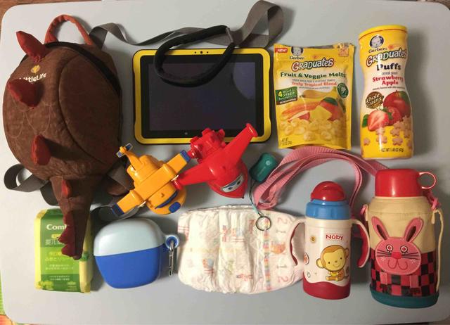 防丢失书包;小天才平板;嘉宝零食溶豆;泡芙;超级飞侠玩具多多;乐迪;小灯;湿纸巾;零食盒;尿不湿;保温杯吸管;保温杯直饮。 最后,我的...... 你们猜我是干嘛的