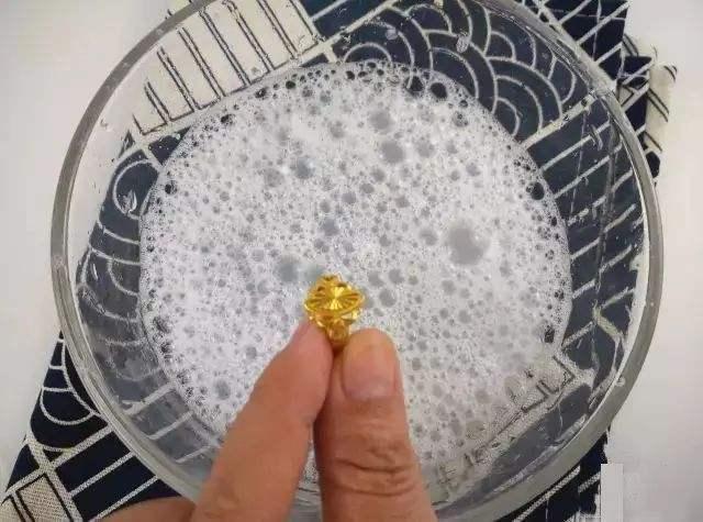 先准备一个碗,放入适量小苏打,再倒入适量的食用盐,接着再倒入适量的洗洁精,然后再倒适量的温水,搅拌均匀后,我们把黄金首饰放进碗里浸泡,大约浸泡10分钟后,我们将黄金首饰捞出来用废旧的牙刷适度的刷洗,刷洗完成后,再将首饰用清水冲洗即可,完成以上的步骤后,您的黄金首饰就又恢复之前的光泽了。