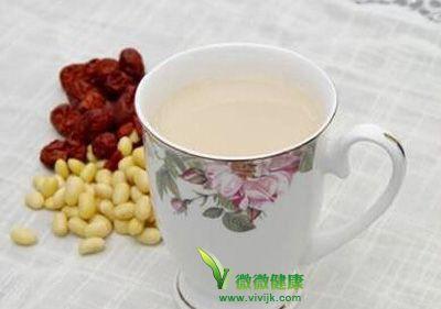 豆奶怎么做 食材主料 :黄豆30g ,花生20g。 辅料: 核桃适量,水适量 牛奶200ml。 步骤 1.花生和黄豆提前泡发。 2.用开水烫一下,剥去外皮。 3.核桃用开水烫一下。 4.同样剥去外皮。 5.将核桃花生黄豆放入豆浆机内。 6.选择果蔬冷饮键,打两遍。 7.过滤出豆渣后,放入锅内烧开。 8.放入一袋牛奶,继续煮开关火。 从营养价值上看,大豆蛋白质含量比较高,含有人体所必需的氨基酸,其中赖氨酸的含量更高,是植物性食物当中最合理、最接近干人体所需比例的食物。 另外,牛奶蛋氨酸含量较高,可以补充大豆蛋白质中蛋氨酸的含量,动、植物蛋白的互补,使氨基酸的配比更合理,更利干人体的消化吸收。 特别是近年来,美国和英国先后发布健康声明:每天食用6.25克大豆蛋白,可以预防心血管疾病,使人们更加重视大豆蛋白的保健作用。 值得人们注意的是,豆奶是不能和鸡蛋同食的,否则会对身体造成损害。希望以上介绍的这些知识能给您的生活带来帮助,还想了解更多相关的知识介绍请看:牛奶营养高还是豆奶营养高