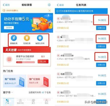 拍门店、拍路段都可以,虽然佣金也比较低,但是胜在简单,照片的通过率也比较高,新手操作也基本能保持在80%左右,虽然赚的不多,但是也能赚点零食钱了。 4)地图淘金 百度地图旗下拍照赚钱软件。功能性质和上面一些软件差不多。 5)蚂蚁微客: 蚂蚁微客是致富宝旗下的一个兼职平台。主要工作就是帮助支付宝推广线下支付。 现在很多线下门店支持致富宝付款,在他们收银台上贴有收款的二维码。随着时间的推移,有些店铺关门,有些搬迁了。当初的位置可能已经换人了。
