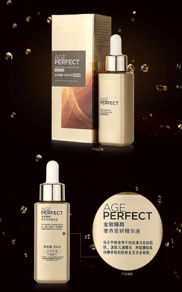 金致臻颜系列,是欧莱雅的顶级抗老系列。 产品无论从包装还是品质来看,都更精致。 这款精华液的主要功效是:深层滋养、紧致淡纹、去暗沉。 乳黄色略粘稠的液体,但是很好推开,滋润度很棒。推荐给偏干肌肤使用。 8、金致臻颜奢养紧妍光感精华液