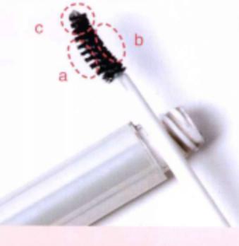 巧用睫毛刷 a突起位置:适合刷睫毛根部,这样不容易碰触眼皮,配合左右z字形刷法,可以将睫毛根加浓加密。 b凹陷位置:适合刷睫毛根到睫毛稍的位置,适合辐射形刷法,可以拉长睫毛。 c刷头位置:由于接触面积小,适合刷局部和下睫毛的位置。