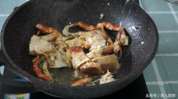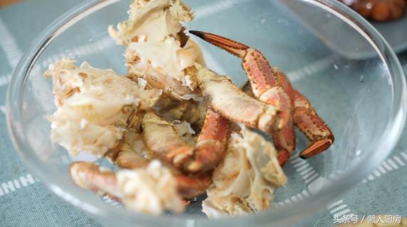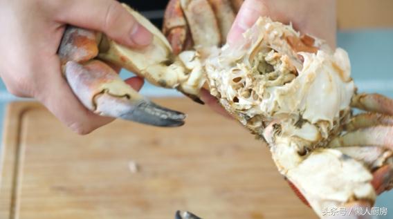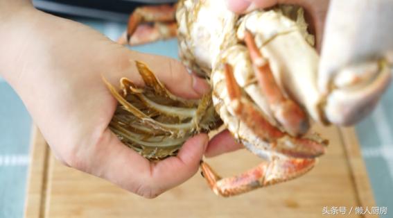 将蟹处理一下,掰掉蟹脐,蟹心也去掉,蟹鳃去掉。