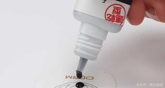四、摇匀胶水,可以开始睫毛嫁接了。第一次操作不可过于着急。 ◆ 用尖头镊子夹住假睫毛的末端,将它的2/3处蘸上胶水。 ◆ 将蘸有胶水的假睫毛接在距根部0.5~1毫米处的睫毛外侧。 ◆ 用小镊子整理粘接好的睫毛。 ◆ 注意:嫁接完后用准备好的吹风球将胶水吹干。