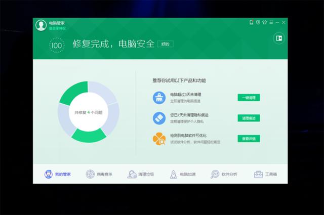 第三步:如果不行,就用电脑管家的“一键修复”功能。