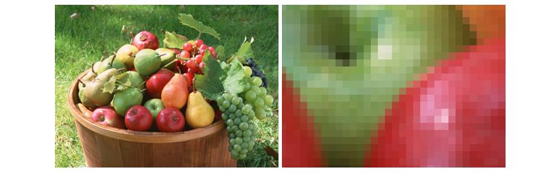 <2>、矢量图 矢量图,又称向量图,是由线条和图块组成的图像。将矢量图放大后,图形仍能保持原来的清晰度,且色彩不失真,如图所示: