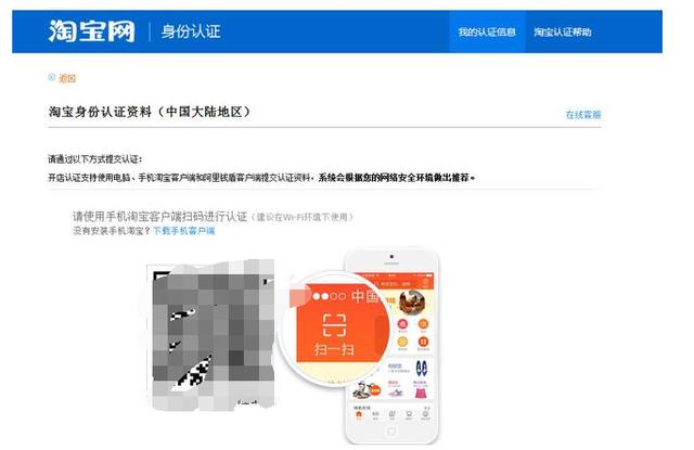第五步:用手机上的淘宝扫一下二维码,在手机上完成认证。
