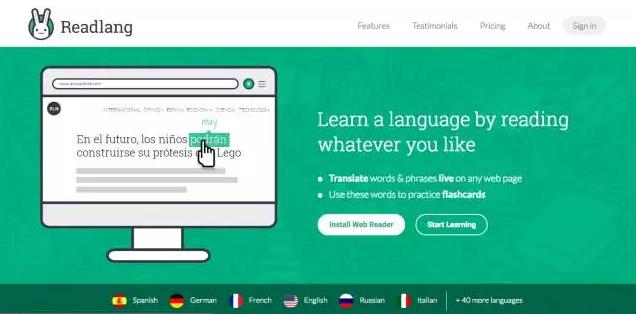 Calm官网 ---05--- Readlang 网址:http://readlang.com/ 使用情景:英语学习,提供英语单词即时翻译、图像记忆、卡片复习功能。