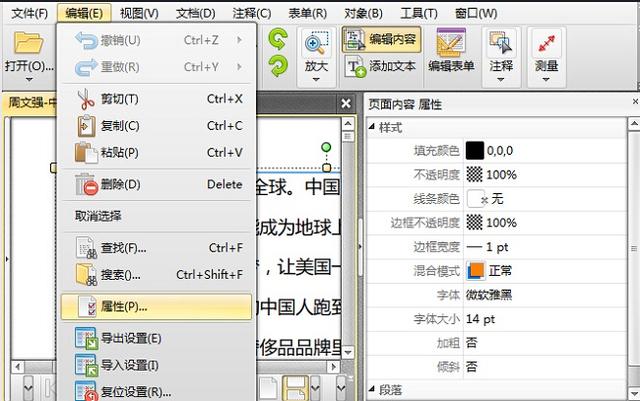 3、可直接对文本编辑、删除、修改,点击右侧的属性栏,可以在这里修改字体、字号、颜色等文本格式。