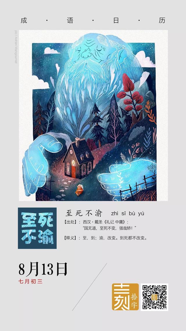 成语详解丨 至死不渝 读音: zh sǐ b y 出处: 西汉戴圣《礼记 中庸》:国无道,至死不变,强哉矫! 释义: 至,到;渝,改变。到死都不改变。 例句: 海枯石烂,至死不渝的爱情一直为青年朋友们所向往。