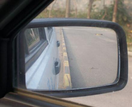 三、回正方向后,先不要停车,让车慢慢行驶,同时观察右侧的后视镜,看到车身与路牙石平行了,距离也合适了,如下图所示,再踩下刹车,拉手刹,摘空档就完成了。
