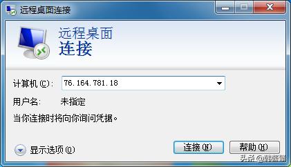 这个就是外网的IP地址,如果不想注册花生壳,就要学会怎么查询到自己的外网IP地址。 设置好后我们开始进入连接远程电脑,点击桌面左下角开始、所有程序、附件、远程桌面连接,然后输入IP或域名即可,因为3389是默认端口,所以3389就不需要单独输入了,如果进行过改动,就要加后缀了,比如3389修改成7122端口,**.**.**.**:7122在远程桌面连接这样输入即可。
