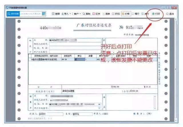 这里要提醒一下各位小主,发票右上角的发票号吗要跟你手上的纸质发票一致。一定不要拿错发票打印。还有如果开票信息有误,已点打印但为放发票打印一样是成功开票的。这个号吗的发票就已经开具,这时候要更改信息只能作废发票然后重新开具。