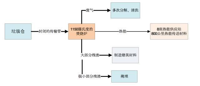 位置:奥地利维也纳 特点:像是一座童话城堡,处理过程中没有异味,没有噪音,没有黑烟 规格:24小时运转,负责维也纳三分之一垃圾的焚烧处理,产生的热量能供应十多万户人家。 技术:拥有先进的废气净化处理技术,垃圾处理流程如下图: