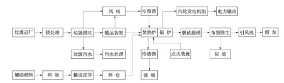 该技术的优点在于: 采用绝氧热解原理,不用进行焚烧; 由于热解炉内为高温绝氧环境,整个处理工艺都避免了二恶英生成的必要反应环境,从原理上阻止了二恶英的产生; 在热解过程中物料相对料床静止,辐射管内流体与反应炉膛完全隔离,避免了传统焚烧产生危险废弃物飞灰的问题; 该技术的预处理采用全封闭厂房,负压操作,在所有可能的臭气散发点设置有臭气收集,经生物除臭系统有效处理,避免了恶臭的扩散。 从以上例子可看出,垃圾焚烧还是大多数国家处理垃圾时的主要选择方式。目前,共有36个国家和地区建有生活垃圾焚烧厂,欧盟、日本、美国建设的垃圾焚烧发电厂占全世界的80%以上。 三、垃圾焚烧的典型工艺与核心设备 典型的垃圾焚烧发电厂工艺主要由垃圾储运、锅炉燃烧、烟气处理、汽轮机发电等4部分组成。