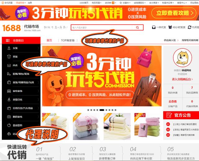 进入代销市场首页,选择自己想代理的产品(都是支持一件代发的)