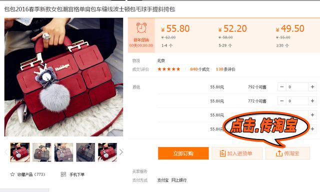 也可以点开单个产品看下详情, 然后此页面也有“传淘宝” 点击即可