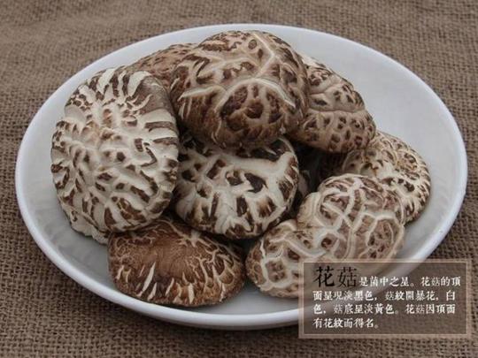 中医认为,花菇含蛋白质、氨基酸、脂肪、粗纤维和维生素1、B2、C、烟酸、钙、磷、铁等。其蛋白质中有白蛋白、谷蛋白、醇溶蛋白、氨基酸等,历来被我国人民作为延年益寿的补品。具有调节人体新陈代谢、帮助消化、降低血压、减少胆固醇、预防肝硬变、消除胆结石、防治佝偻病等功效。有“植物皇后”之誉。 据化学分析测定,其含水量为普通香菇的二分之一,氨基酸的含量高出3~4倍,口感极佳,而且它滋味鲜美,是烹调的好材料,又是治病的妙药。 二、花菇的辨别 花菇的鉴别是根据裂纹的深浅、大小和颜色的不同来分辨的。