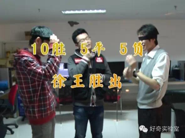 据说蒙着眼睛进行石头剪刀布,获胜几率更大!这是真的么? 大史和徐王蒙上眼睛比了20局,徐王以10胜、5平、5负的战绩,战胜了大史。