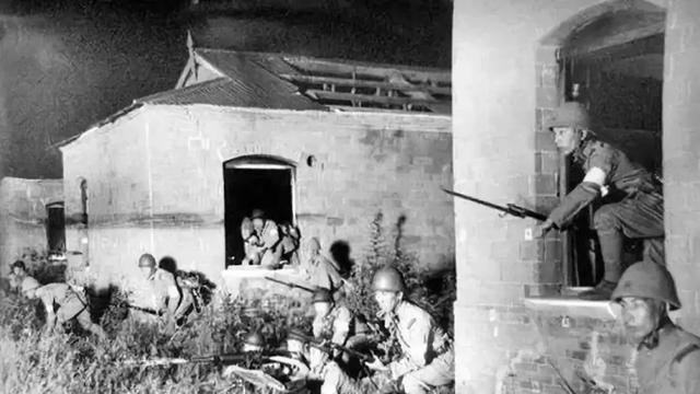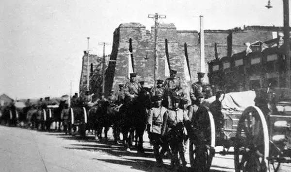 1931年9月19日凌晨,日军炮火轰击北大营三小时后,有准备的日军步兵冲进北大营。日军左胳膊以白布条为记号。