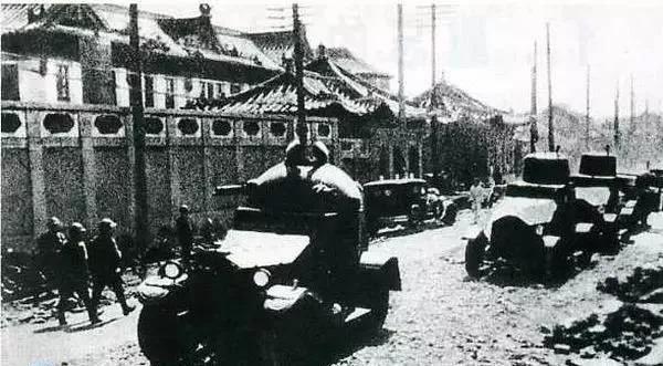 日军19日占领沈阳。图为日军装甲车开进沈阳。