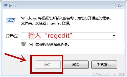 02 在弹出的对话框中输入“regedit后”点击确定。