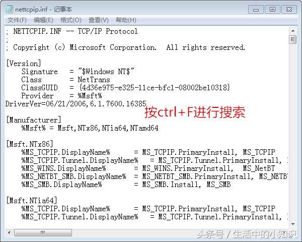 04 也可以使用“Windows键”+E打开“我的电脑”后,在搜索栏输入:C:Windowsinf ettcpip.inf后按回车键。