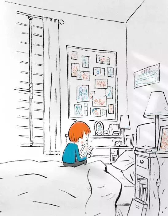 他在浴室里找到了妈妈的“抗衰老”面霜,抹在自己的脸上,他望着镜子里的自己,心里想着5岁的时光,期盼着时间不要流走。 他甚至幻想自己曾经在妈妈肚子里的样子,像宇航员漂浮在太空一样,自由自在,快乐无忧。他用彩笔画下自己将来的模样,要看看时间究竟会给自己带来些什么。