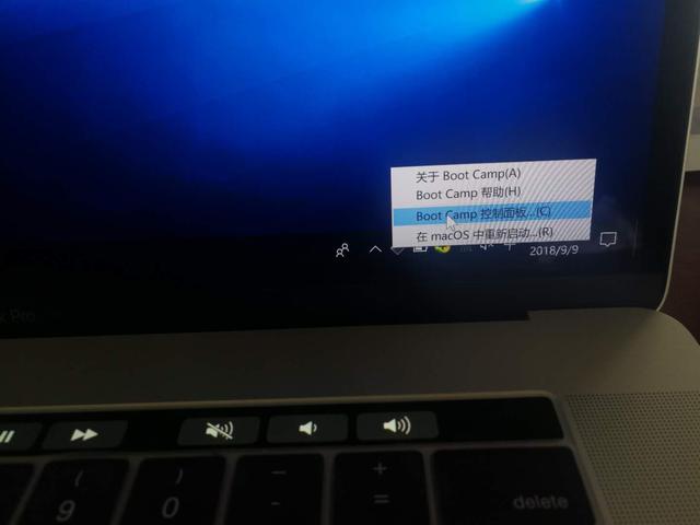 bootcamp图标 点击这个图标,会看到菜单bootcamp控制面板