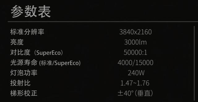 120英寸要最短要3.91米,客厅党注意投距