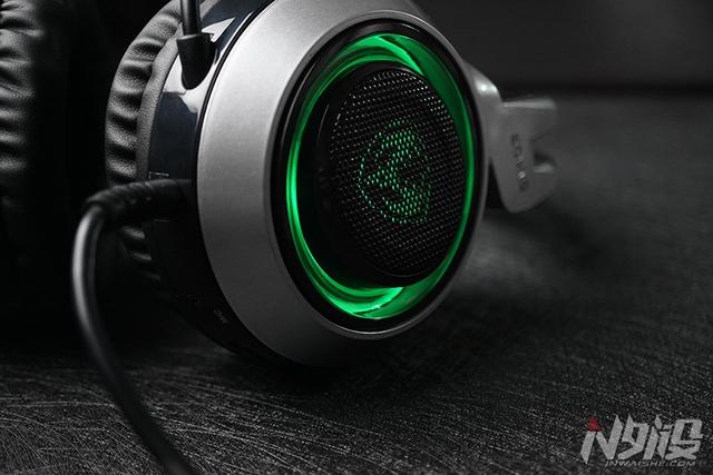 硕美科G951游戏耳机拥有OBS三色呼吸灯(红色、蓝色、绿色),灯光颜色无法自定义,而灯光主要集中在耳罩表面。LOGO灯表现相当均匀,外圈灯光则是更突显层次感,整体效果不错。