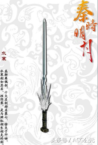 第七:水寒 水寒是墨家统领高渐离的佩剑,它为墨家统领徐夫子所铸,风胡子剑谱“十大名剑”排名第七。水寒最大的特点就是性阴寒,能够发出寒气甚至结冰,是一把美观而实用的名剑。 第八:未知